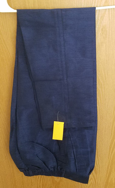 Blue M38 #4581612 Blue Tussore, Kurta Shoulder 16”, Chest 41”, Length 38” long Sleeves. Pants Elastic Waist 34” Length 38”