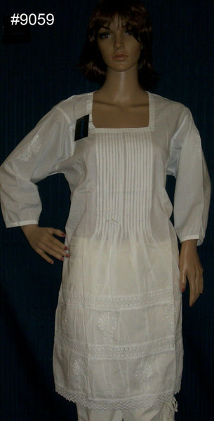 Solid White Cambric fine cotton, Hand embroidered detail adorned with Crochet Lace, Cocktail wear Blouse Kurti.